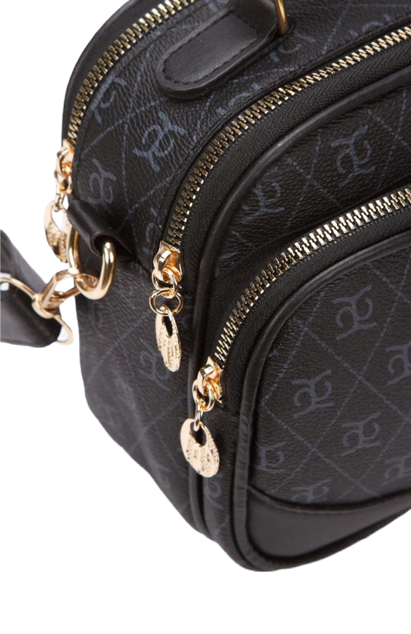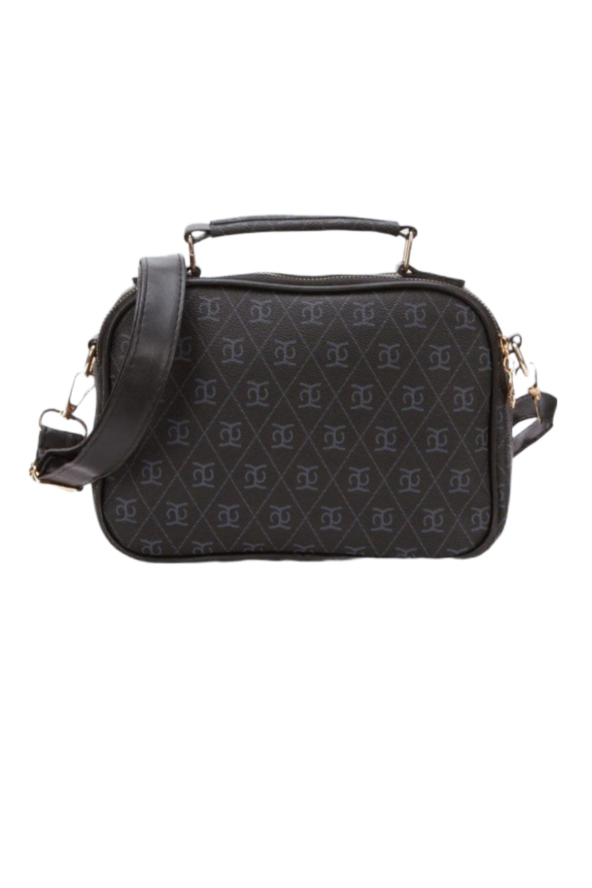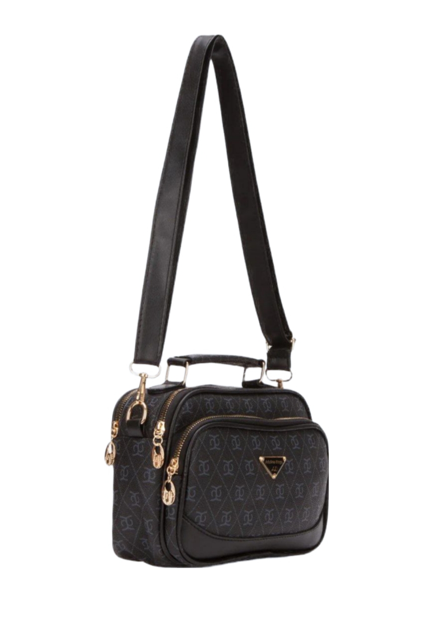 Desenli çarpraz askılı siyah el ve omuz çantası
